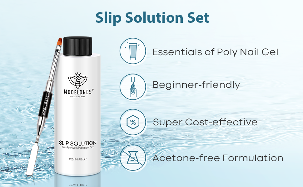 Slip Solution 120ml Dual Head Brush Set For Poly Nail Extension Gel